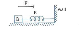 A point mass m and charge Q is connected with a spring of negligible mass. Initially spring is in its natural length L. Now a horizontal uniform field E is switched on as shown. Find