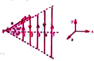 A current carrying conductor of mass m, length I carrying a current i hangs by two identical springs each of stiffness k. For an outward magnetic field B find the deformation of the springs. Put m=50 gm,. `g=10m//s^(2),l=1/2m,i=1A` and B=1 T and k=50 N/m