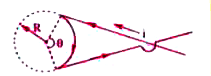 A wire carrying I has the confight-ration as shown in figure. Two semi-infinite straight sections, both tangent to the same circle, with all sections, both tangent to the same circle, with all sections lying in the same plane. What must `theta` be in order for B to be zero at the centre of the circle?